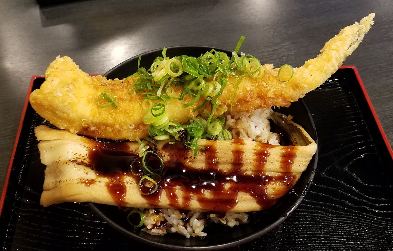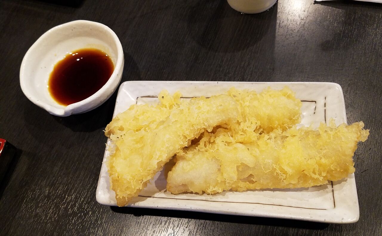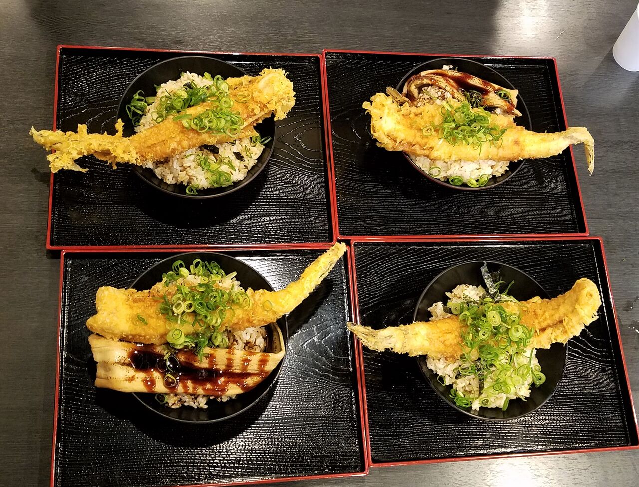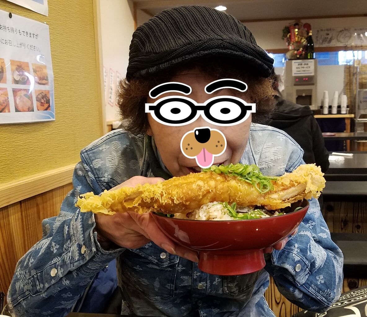 太刀魚釣り名人のAK47さんは『はみ出し!大穴子天ぷら丼 1000円』と『太刀魚天ぷら 450円』