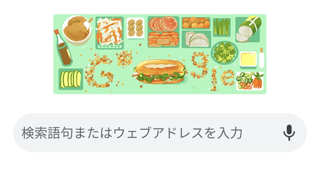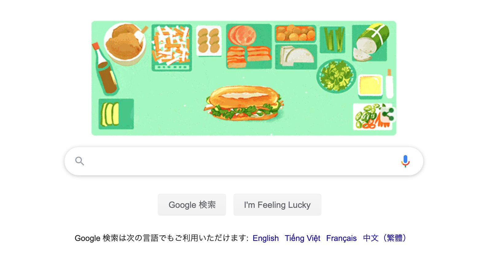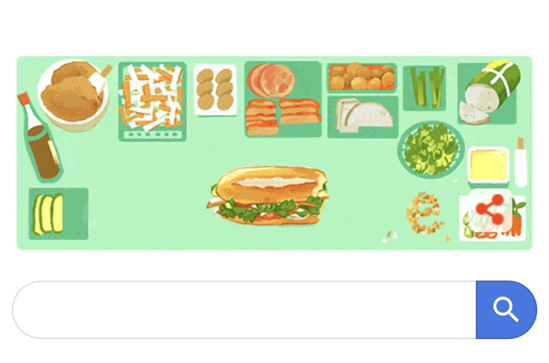 @xoixoixoigaGoogleが今日はバインミー仕様になってた。これってベトナムだけ?意外とアニメーションが凝ってて5回くらい見た。